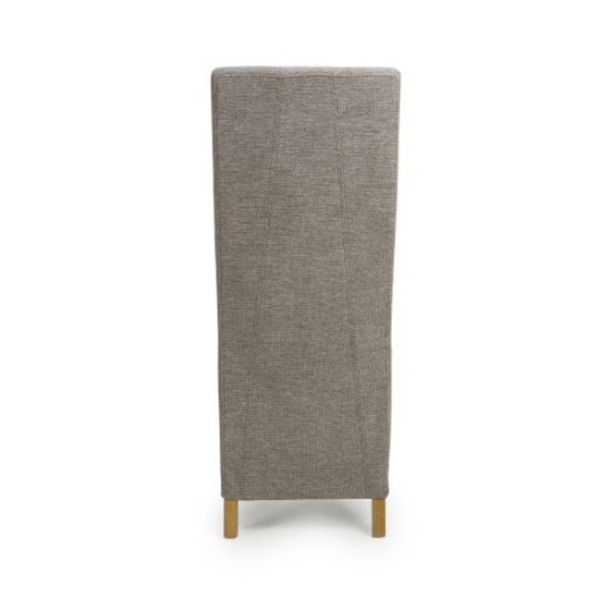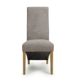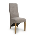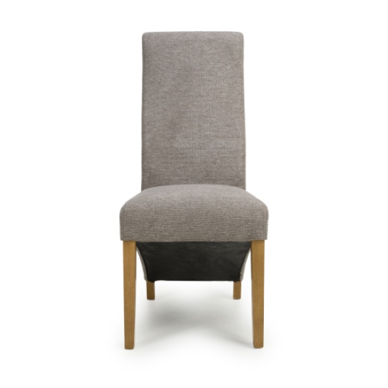 This elegant wave back design dining chair comes upholstered in fashionable natural/green/mocha/light grey hexagonal weave fabric. Sprung and belted seat. Supplied with natural rubberwood legs. Fully assembled.