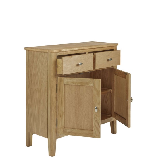 The Bishop collection is subtle but sophisticated with clean lines, solid oak tapered legs and posts. It is crafted from oak and oak veneers with a stylish oval handle.