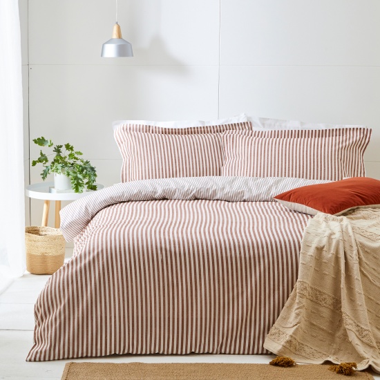 Freshen up your bedroom with this timeless duvet cover that features a reversible subtle melange striped print for a textured appearance. Made of 100% cotton, this duvet set is both soft and hard-wearing. Easily remove the duvet thanks to the clear button closure.