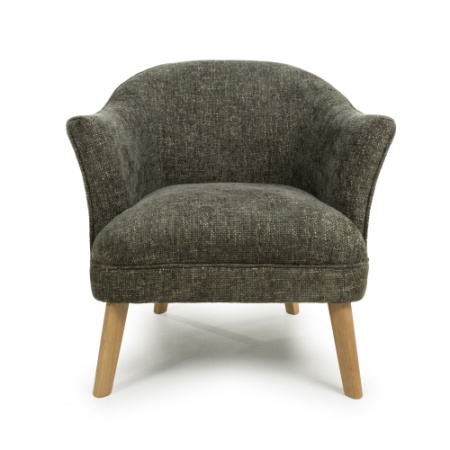 A curved wing armed armchair, upholstered in soft, tactile grey/natural/green flax effect fabric. The gentle curves and sloped back combine with ample plush padded cushioning for the ultimate in comfort. Completed by sturdy natural rubberwood legs. Leg assembly required.