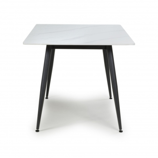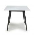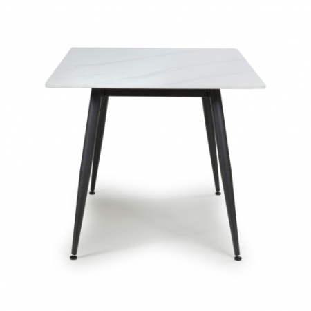 A classic square ceramic dining table in an attractive grey granite finish. The sturdy 10mm thick table top is set off by fashionable diagonal criss-cross chalk markings. The table is supported by 4 metal legs with adjustable feet. Assembly required. Sold individually.