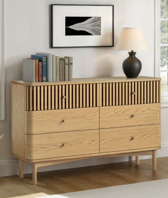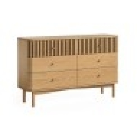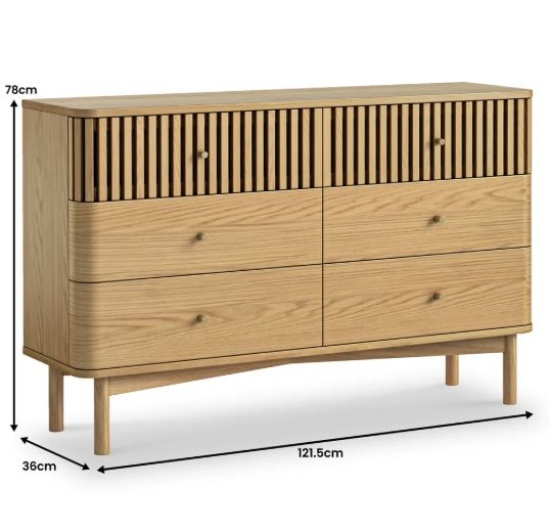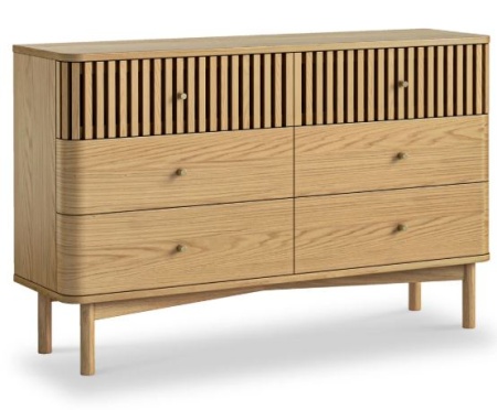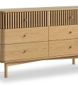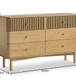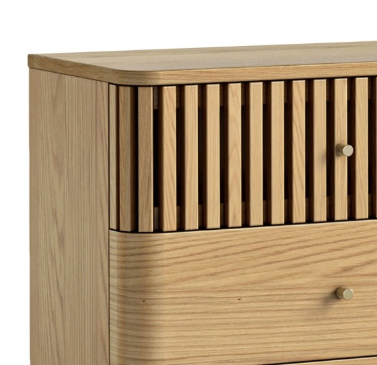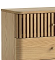With its clean lines, natural oak finish, and distinctive vertical slat detailing, this chest of drawers embodies Scandinavian design principles that prioritise both function and beauty.