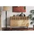 The top drawers feature the collection's signature vertical slat detailing, adding visual texture and architectural interest to this substantial storage piece.