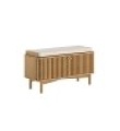 The Santi Storage Bench combines comfort and practicality with its cushioned top and generous interior storage space. Featuring a plush neutral fabric cushion that provides comfortable seating, this bench features 2 doors that open to reveal ample room for blankets, pillows, shoes, or other items you want to keep organised but out of sight.