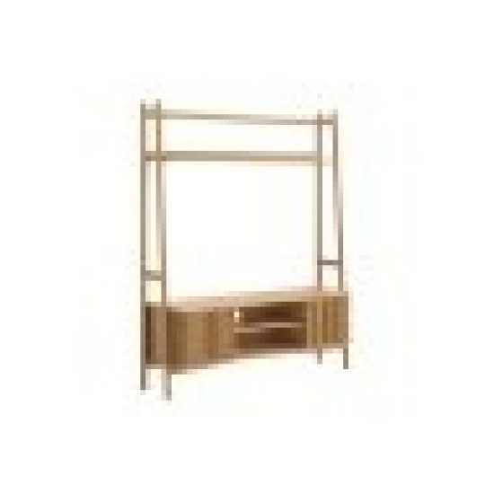 The distinctive ladder-style framework creates a light, airy presence while providing substantial storage and display options. Two spacious shelves above the TV platform offer ample room for books, photos, or decorative objects, allowing you to create a personalised entertainment space. The angled sides add architectural interest and ensure stability for your television and media components.