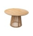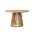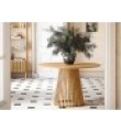 The Santi Oak Round Dining Table creates a striking focal point in your dining space with its distinctive slatted pedestal base. The sculptural design transforms everyday dining into a special experience, with the vertical slats creating a captivating play of light and shadow that adds visual interest from every angle.