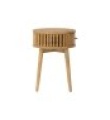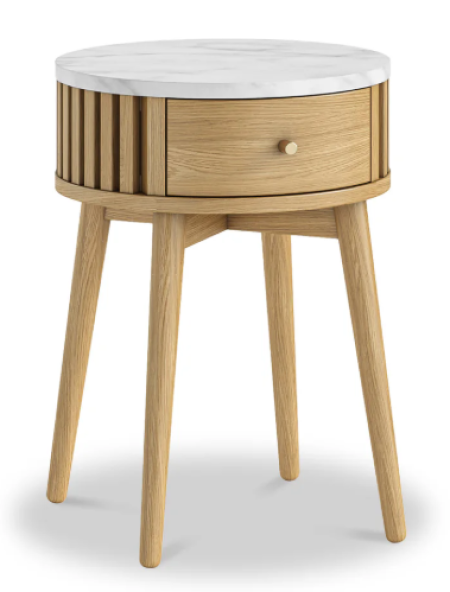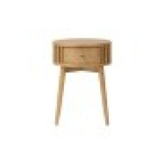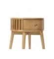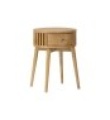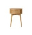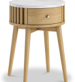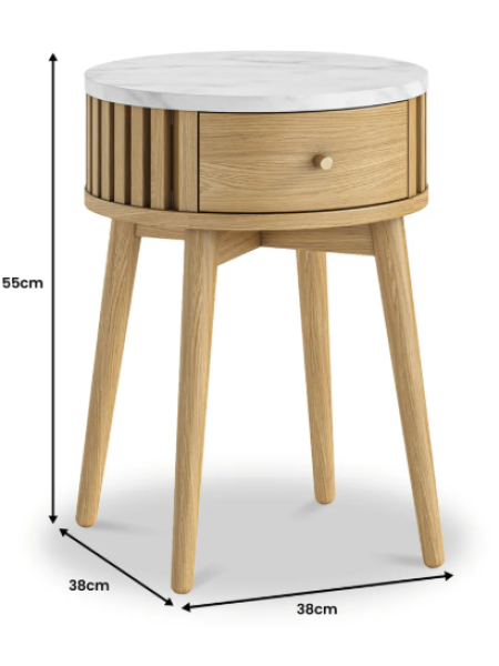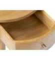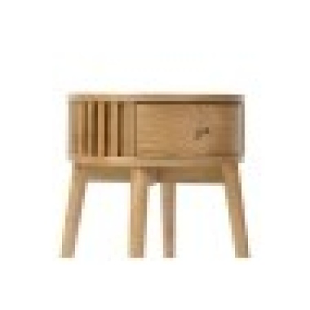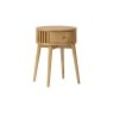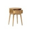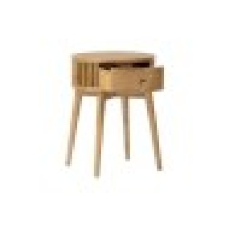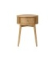 Discover the Santi Oak Round Side Table – a stunning blend of natural oak and oak veneers. This quality sofa side table with storage showcases a great balance of style and practicality, providing an attractive addition to your living space.