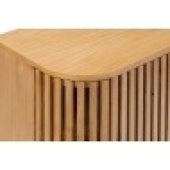 Bring architectural interest to your living space with the Santi Oak Slatted Sideboard. Its distinctive vertical slat detail creates a captivating play of light and shadow, whilst the beautifully curved edges soften the overall silhouette.