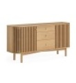 This versatile sideboard for living rooms offers generous hidden storage behind the slatted doors, complemented by a smooth-gliding drawer for smaller items.