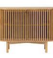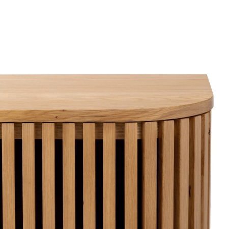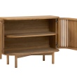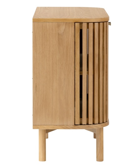 Crafted with precision, the distinctive slatted door fronts with petite golden handles add a delightful texture and unique design . At the same time, the curved shape brings a soft, graceful flow that will instantly elevate your space.